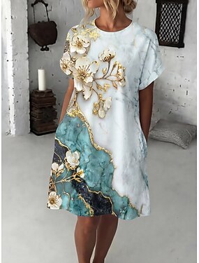 Per donna Vestito longuette Abito casual Abito linea A Moda Informale Da mare Giornaliero Standard Floreale Manica corta Girocollo Verde Azzurro Estate