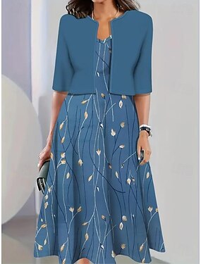 Per donna Insieme del vestito Abito a Tubino Abito Estivo Elegante Floreale Grafico Stratificato Stampato Abito Midi Manica 3/4 Girocollo Quotidiano Vacanza Blu Arancione Verde Estate Primavera