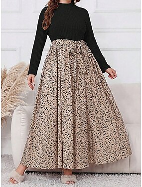 Per donna Abito Midi Tubino Vestito T-Shirt Vacanza Casual Boho Quotidiano Ferie Data Grafico Manica Lunga Girocollo Grigio