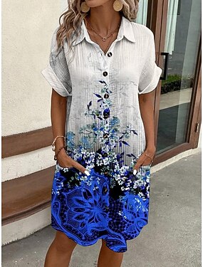 Per donna Mini Abito Abito Camicia Vestito Casual Abito Stampato Moda Moderno Quotidiano Spiaggia Weekend Vestibilità regolare Floreale Manica Corta Colletto a Camicia Blu Estate Primavera Autunno