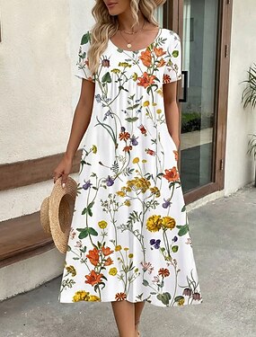 abito midi da donna scollo a V stampa floreale manica corta a trapezio blu comfort spiaggia festa primavera estate moda abbigliamento abbigliamento