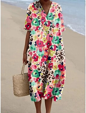 Per donna Abito Lungo Maxi Abito Vestito Casual Abito Estivo Abito Boho africano Quotidiano Vacanza Weekend Vestibilità regolare Floreale Manica Corta Scollo a V Verde chiaro Viola Verde Albicocca