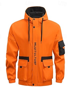 Per uomo Giacca Sportiva Impermeabile Giacca antivento All'aperto Casuale Impermeabile Giacca a Vento Cerniera Tasca Primavera Autunno Tinta unica Moda Streetwear Con Cappuccio Regolare Nero