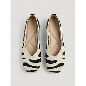 Ballerine da donna in maglia con stampa zebrata e punta quadrata, comode scarpe casual imbottite da infilare, calzature traspiranti per camminare in vacanza &abbigliamento quotidiano