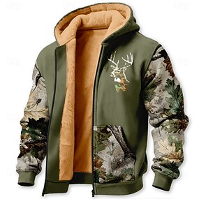 Per uomo Mimetico Cervo Pile Felpa con Cappuccio Giacca di pelle Felpa Classico Militare Da caccia Manica Lunga Girocollo All'aperto Campeggio Nero Marrone Verde Grigio Con zip Autunno Inverno