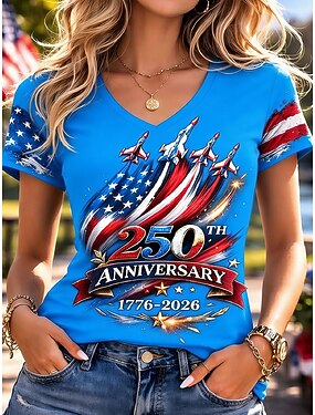 4 luglio 2026 250° Per uomo Bandiera Americana Polo Manica Corta Magliette polo Camicie con Colletto Casual All'aperto Abbigliamento quotidiano Stampa 3D Estate Blu Bianco Blu scuro