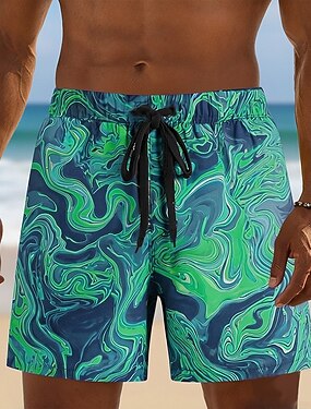 Per uomo Shorts Shorts da Spiaggia Coulisse Oceano Astratto Arte astratta Asciugatura Rapida All'aperto Lunghezza al ginocchio All'aperto Vacanza Casa Vacanza Stile Etnico azzurro cielo Blu marino