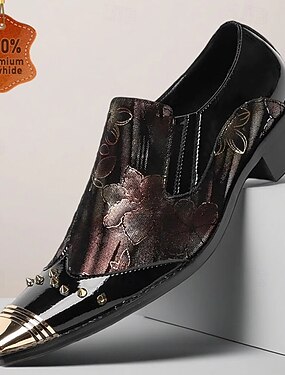 scarpe slip-on da uomo nere con decorazioni floreali: eleganti scarpe formali con dettagli decorativi per occasioni speciali ed eventi serali