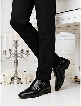 scarpe da uomo formali in similpelle nera con doppia fibbia e finitura lucida: calzature eleganti e raffinate per lavoro, matrimoni e occasioni speciali