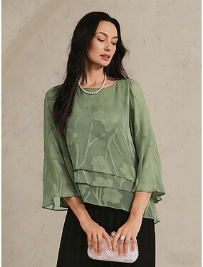 Per donna Camicia di Pizzo Blusa Top Eleganti Top in chiffon Orlo asimmetrico Tinta unica Floreale Grafico Elegante Essenziale Casual Manica 3/4 Manica a Campana Scollo a Barca Top Regolari