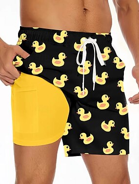 Per uomo Animale Divertente Anatra Pantaloncini foderati Pantaloncini da bagno 2 in 1 Pantaloncini da mare Misura del girovita medio Hawaiano Vacanza Abbigliamento mare Tasche Laterali Con Fodera a