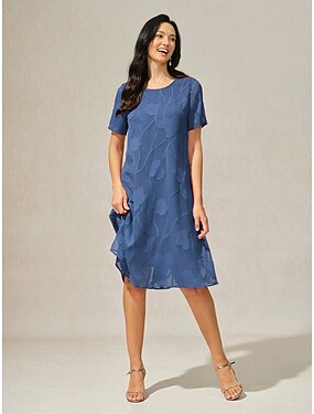 Linea ad A Abito Lunghezza al ginocchio Vestito da Festa Abito da Cocktail Abito da invitata a nozze Abito da cerimonia per signora Manica Corta Girocollo Elegante Formale Ospite di nozze Serata