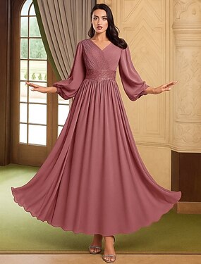 Abito da invitata a matrimonio a lunghezza terra in stile A abiti formali abito da sera abito per madre della sposa maniche lunghe scollo a V elegante vintage taglie forti spandex con pieghe e