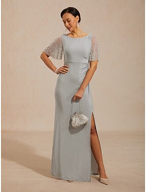 Abito da Ospite di Nozze Sheath Colonna di Lunghezza Piena Abiti Formali Abito da Sera Abito per Madre della Sposa Senza Maniche Collo Rotondo Collo a Barca Elegante Vintage Taglia Plus Formale