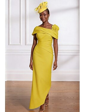 Tubino Colonna Lunghezza al pavimento Abito da invitata a nozze Abito Formale Abito Derby Abito da cerimonia per signora Senza Maniche Mezza Manica Scollo a Barca Elegante Vintage Formale Derby del