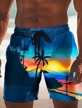 Per uomo Albero di Cocco Natura e paesaggi Pantaloncini da mare Pantaloncini da Surf Costume nuoto a pantaloncino Misura del girovita medio Stampa 3D Hawaiano Surf Ferie Spiaggia Coulisse con fodera