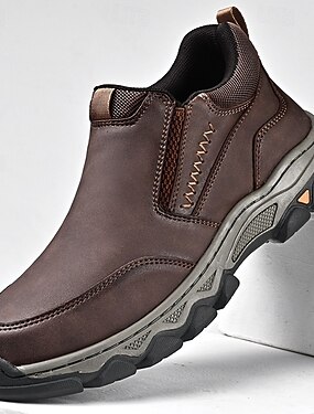 mocassini slip-on da uomo in similpelle marrone scuro con suola antiscivolo robusta, comode scarpe da passeggio per l'outdoor, adatte per abbigliamento casual e da viaggio