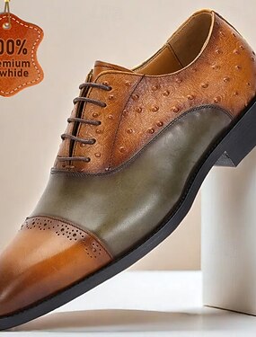 scarpe oxford da uomo in pelle bicolore con stampa struzzo – scarpe eleganti stringate di lusso per banchetti e balli di fine anno