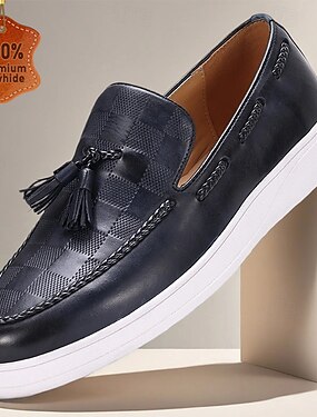 scarpe casual slip-on da uomo blu navy – realizzate in pelle di prima qualità, comode per l'uso quotidiano e per gli outfit casual delle vacanze