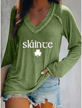 T-Shirt Donna per il Giorno di San Patrizio con Grafica Floreale Piante Elegante Vintage Stilosa Manica Lunga Collo a V Top Regolari per Uscite Giornalieri Weekend Stampa Blu Nero Bianco Verde Grigio