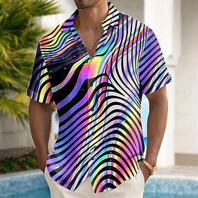 Per uomo Arcobaleno Astratto Linee Op-Art Camicia Camicia con Bottoni Camicia casual Manica Corta Moda Casual Quotidiano Vacanza Estate Primavera Collo ripiegato Stampa 3D camicie con colletto Viola