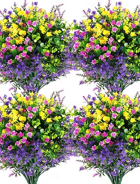 24 mazzi di fiori artificiali per decorazioni esterne, margherite finte in seta resistenti ai raggi UV, piante finte in plastica primaverili, verde per esterni, interni, giardino, casa, veranda,