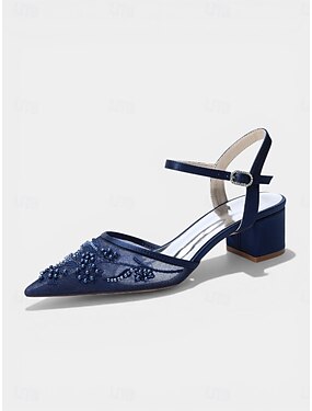 Décolleté da donna blu navy con tacco a blocco e ricami – eleganti scarpe da cocktail per feste.