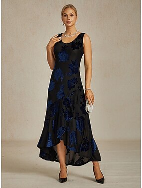 Per donna Abito maxi Tubino Abito a sirena Abito a trapezio Elegante Formale cocktail Festa serale Feste Ospite di nozze Vestibilità regolare Floreale Senza Maniche Girocollo Blu marino