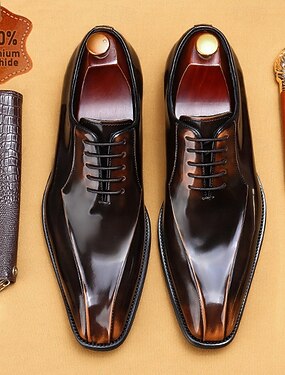Scarpe stringate Oxford da uomo in similpelle, classiche scarpe eleganti formali per lo sposo e il corteo nuziale.