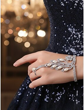 Bracciale da donna con catena a mano e strass a forma di foglia di perla: elegante gioiello da festa per serate, matrimoni ed eventi formali