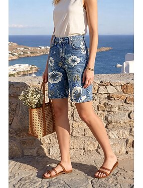 Per donna Bermuda Shorts Pantaloncini Estivi Vacanza Moda Streetwear Lunghezza al ginocchio Vita Alta Floreale Grafico Tasca Comodità Traspirabilità Confortevole Inelastico Quotidiano Vacanza Formale