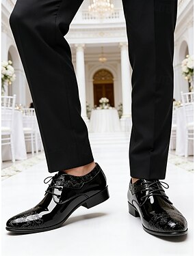 stivali eleganti da uomo in vernice nera – allacciati alla moda, da indossare in modo formale e casual, perfetti per eventi e lavoro
