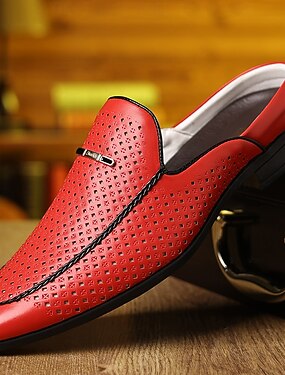 mocassini da uomo in similpelle rossa: design traforato alla moda per la traspirabilità, perfetti per l'ufficio, eventi formali e uscite informali