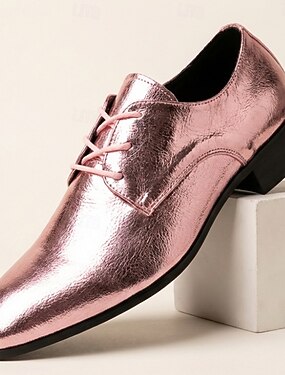 Scarpe Oxford da uomo rosa metallizzato, stringate, lucide, eleganti, formali, calzature da lavoro alla moda per matrimoni, banchetti, feste, balli di fine anno, spettacoli teatrali e serate di lusso.