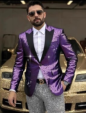 Per uomo Giacca blazer Collare di chiusura Moda Festa Scintillante Tinta unita Blazer Viola Verde Vestibilità aderente Monopetto Un Bottone