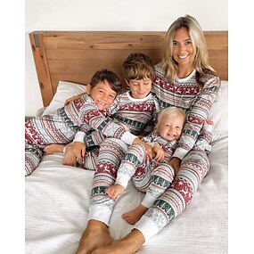 Famiglia Pigiama motivo natalizio Casa Stampato Rosso Manica Lunga Attivo Abiti coordinati