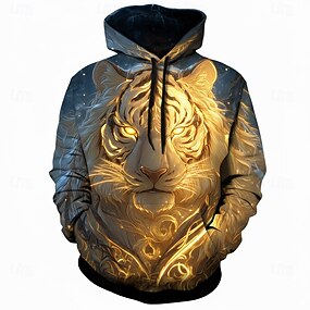 Per uomo Illusione ottica Leone Stampa 3D Felpa Casual 3D Manica Lunga Girocollo Vacanza Feste Regalo Giallo Viola Arancione Marrone Grigio Girocollo 3D Tutte le stagioni progettista S M L XL XXL XXXL