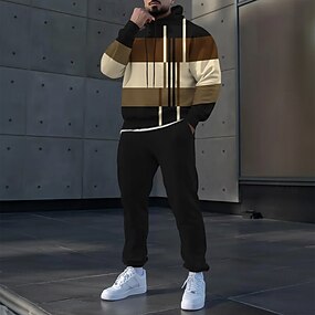 Per uomo Blocco di colori 2 pezzi Set di felpe 3D Tuta Felpa con Cappuccio Manica Lunga Pantaloni lunghi Con Cappuccio Casual Quotidiano Athleisure Stampa 3D Primavera Autunno Inverno Marrone