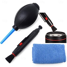 Kit di pulizia per fotocamera 3 in 1 che include penna per la pulizia, spazzola, panno, soffiatore ad aria compressa, kit di pulizia per lenti per fotocamera, reflex, telescopio, lente