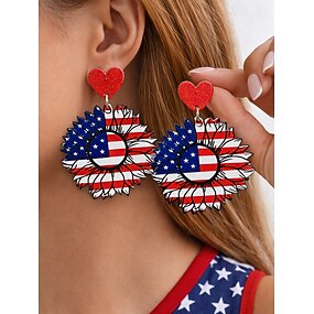 Orecchini pendenti patriottici da donna in acrilico, orecchini con bandiera americana a forma di girasole, stella e cuore in diversi stili, perfetti per il 250° anniversario degli Stati Uniti, il giorno dell'indipendenza, l'abbigliamento casual, i viaggi