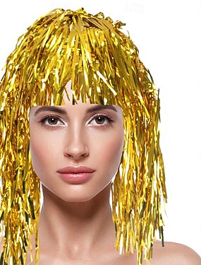 Parrucca di Carnevale 2026 Giallo Riccio Lunghezza media Parrucca sintetica da festival Martedì grasso Parata Capelli per costumi da cosplay per Da donna