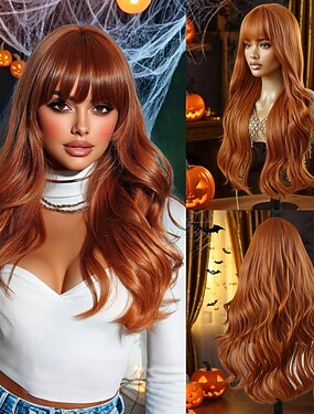 Parrucca di Halloween arancione ondulata di media lunghezza da 20 pollici, riga centrale, senza frangia, capelli sintetici resistenti al calore per cosplay &servizi fotografici