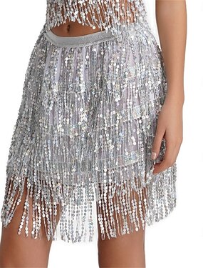Gonna di paillettes con frange e sciarpa hip per donne per carnevale festival festa