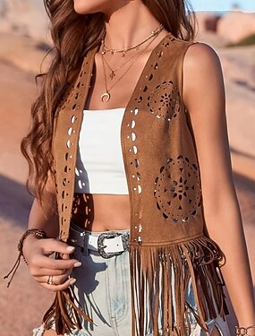 Retrò Vintage Anni '70 Disco Gilet in camoscio Senza maniche Hippie Disco Frangia con nappe Costume Per donna Halloween Carnevale Mascherata Festival Musicale Performance Parata dell'Orgoglio Adulti