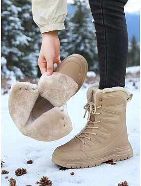 stivali da neve invernali da donna – scarpe da esterno impermeabili, calde, foderate in pelliccia, con lacci, per il freddo e le escursioni