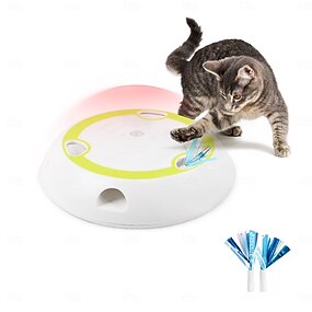 All for Paws, giocattolo interattivo per gatti con sensore di movimento, 6 fori, giocattolo automatico a forma di topo con piume per gatti da interno