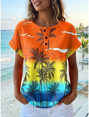 Per donna Maglietta Waffle Maglietta Top estivi Blocco di colore Stampato Grafico Geometrico Piante Vintage Elegante Classico Manica Corta Girocollo Top Regolari Casuale Quotidiano Blu Giallo Rosa