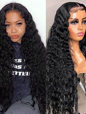 Parrucca frontale in pizzo trasparente 13x4 con onde profonde, capelli umani, lunghezza 14-28 pollici, per donna.