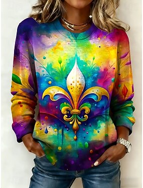 Per donna Felpa Pullover Stampato Grafico Classico Casual Manica Lunga Girocollo Top Regolari Abbigliamento da sera Abiti da festa Viola chiaro Fucsia Viola scuro Primavera Autunno