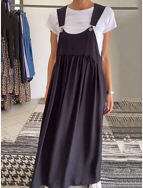 Per donna Abito maxi Finto cotone e lino Abito a Tubino Abito Sottoveste Casual Quotidiano Vestibilità comoda Semplice Senza Maniche Girocollo Blu Nero Fucsia Marrone Estate Primavera Autunno